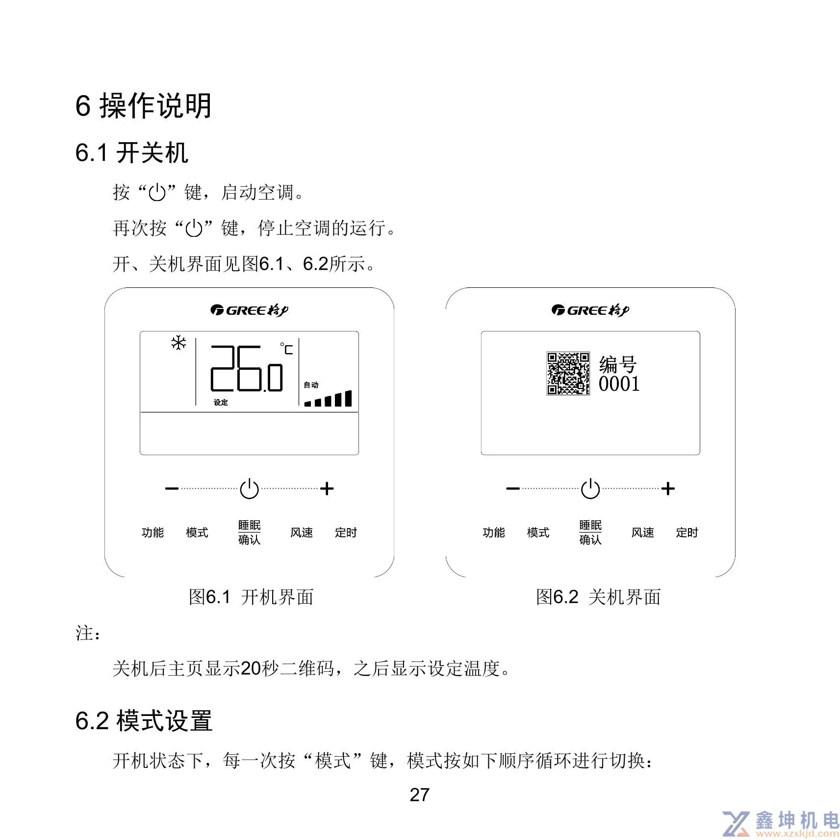 - 格力中央空调线控器说明书XC71-33/H2XC71-24/HXC71-24/HC