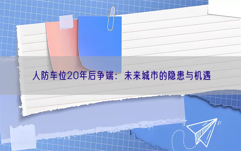 在面对人防车位的争端时,我们既要看到其中的挑战,也要抓住其潜在的机遇。通过合理的规划与管理,不仅能够保障居民的安全和便利,更能提升城市的整体形象与功能。相信在不久的将来,随着各方共同努力,这一问题将会迎刃而解,城市也将焕发出新的生机与活力。