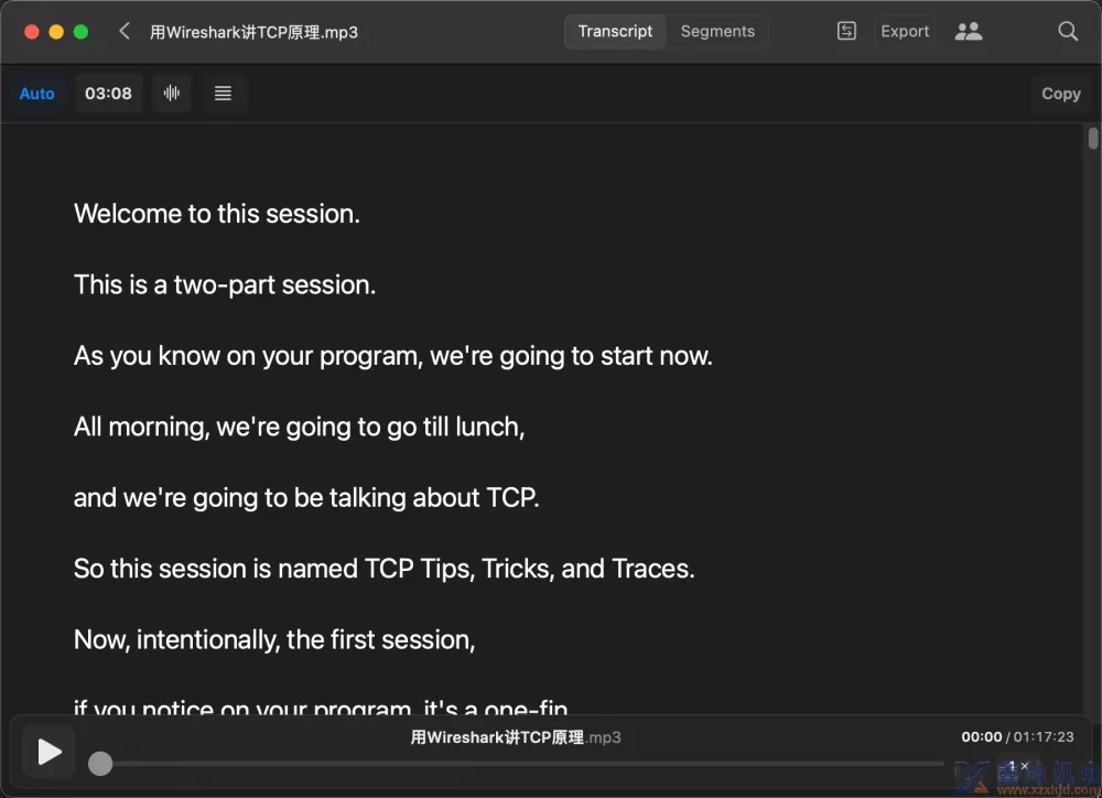 1小时17分的视频文件,3分8秒时间内容完成了转写,25.67倍加速