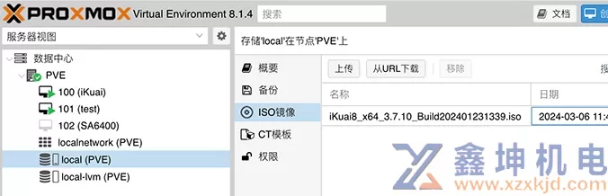 上传镜像包到 PVE – local – ISO镜像 – 上传