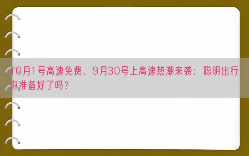 10月1号高速免费,9月30号上高速热潮来袭:聪明出行,你准备好了吗?