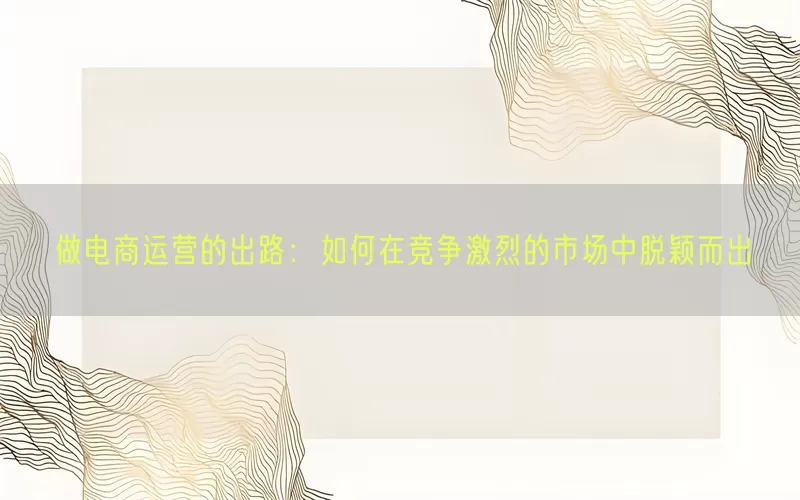 做电商运营的出路:如何在竞争激烈的市场中脱颖而出